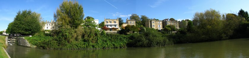 The houses in Sydney Buildings are primarily from the late Georgian and Regency period (1790-1830), although at the southern end of the road there are 10 houses dating from the 1930s and one much more recent. Overall, the houses show an interesting diversity of size and appearance. All have splendid views of the city and its beautiful Abbey. The lower-numbered ones at the northern end back directly onto the Kennet and Avon Canal. Further up the road they look out over meadows and woods belonging to the National Trust.